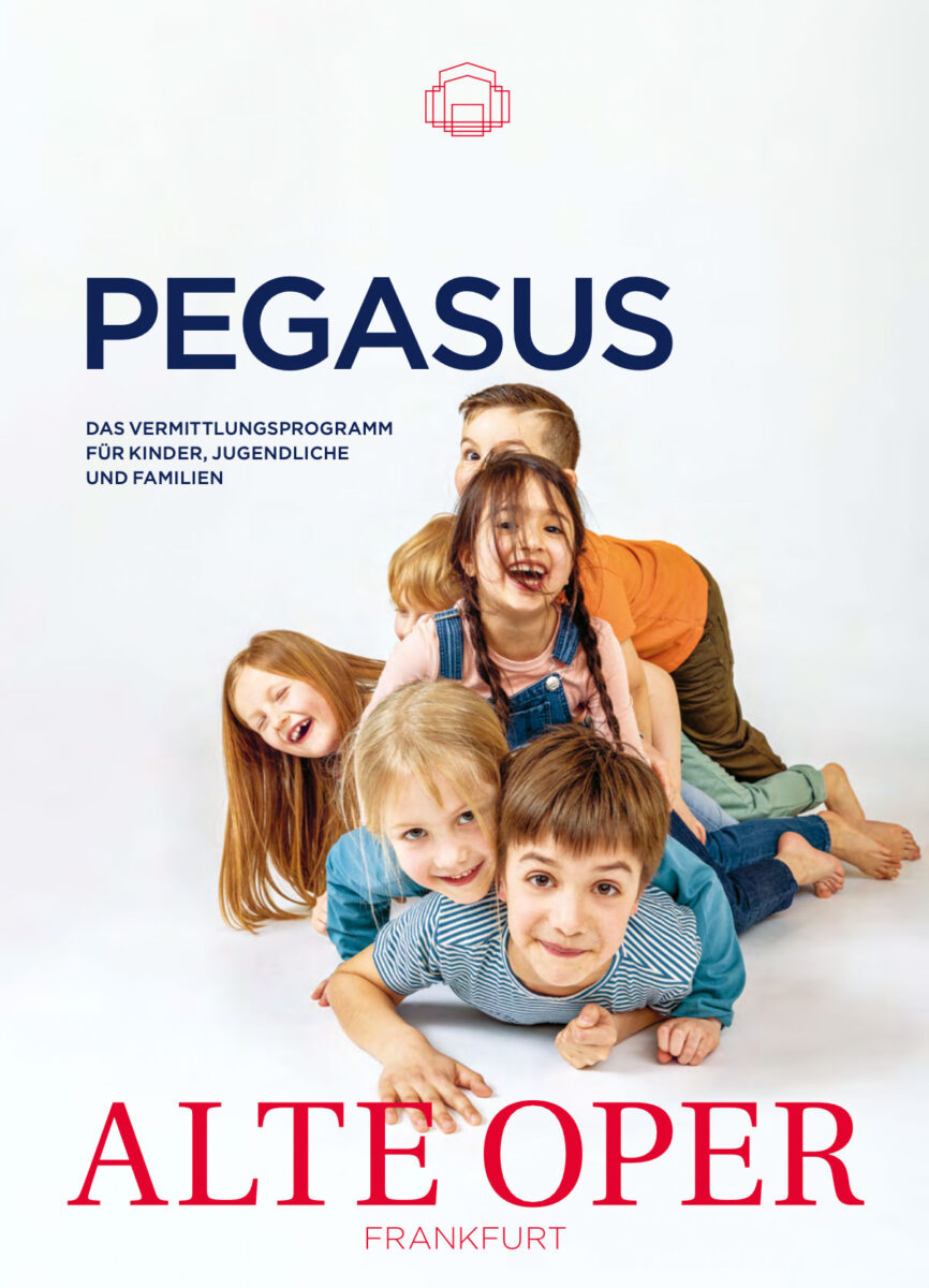 Mit dem Kinder- und Jugendprogramm PEGASUS wollen wir unsere jungen und jüngsten Gäste in der Alten Oper herzlich begrüßen. Es umfasst Konzerte zum Mitmachen, Begegnungen mit klassischen und zeitgenössischen Werken, Workshops zur kreativen Auseinandersetzung mit Musik und vieles mehr – und das für alle Altersgruppen von 0 bis ins Erwachsenenalter. Das kontinuierliche Angebot für Babys, Kleinkinder, Grundschulkinder und Jugendliche möchte sowohl Familien als auch Kitagruppen sowie Schulklassen ansprechen und auf vielfältige Weise Zugänge in die Welt der klassischen und zeitgenössischen Musik ermöglichen.